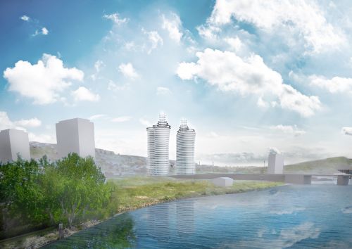 Dvojice věžových obytných domů je komponovaná jako významná dominanta severního předpolí mostu Barikádníků symetricky v jeho ose, prostorově umístěná mezi stávajícími výškovými budovami kolejí ze 70. let 20. stol (arch. Karel Prager). Pohledově exponovaný pozemek v Praze 8, Pelc - Tyrolka, s unikátními výhledy na otevřené pražské panorama na protějším vltavském břehu. Stavební program – identický pro každou stavbu zvlášť: obytná část kolejí obsahuje v převážné části domu dvoulůžkové pokoje s vlastním hygienickým zázemím (umývadlo, sprcha, WC), vícepokojové byty pro pedagogy, ve vyšších patrech s výhledy, společné prostory: - recepce, fitness, oddělený wellnes – bazén cca 15 m, odpovídající technické a obslužné zázemí domu, prádelna, sušárna, studentská kavárna, možnost restaurace, garáže pro cca 50 aut, odpovídající zahradní úpravy, přírodní jezírko a letní altán se studovnou.